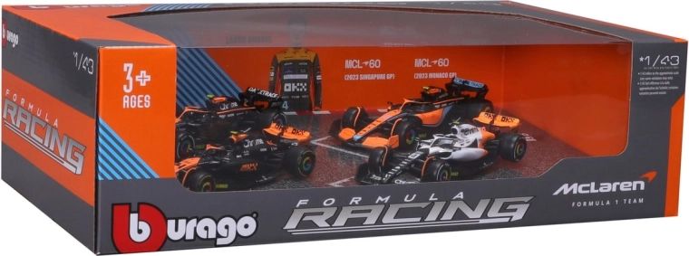 Zbierajte pretekárske legendy s detailným setom modelov Bburago v mierke 1:43. Štvrobalenie RACE Formula F1 prináša vozidlá McLaren F1 Team MCL38 (2024) pilotované Random Norrisom (#4) a Oscarem Piastrim (#81). Modely vynikajú kvalitným spracovaním, autentickými farbami a precíznymi detailmi pre radosť zberateľov aj mladých fanúšikov F1.