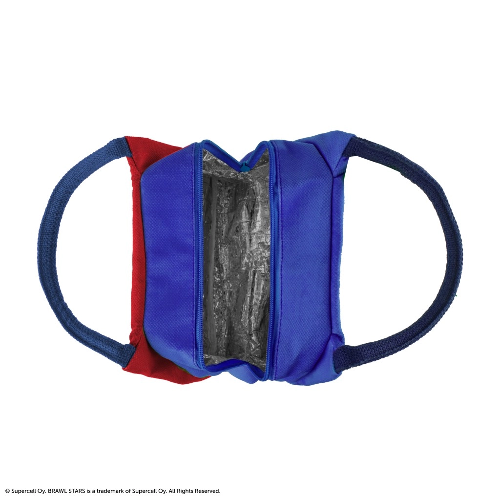 Taška zaujme výraznou farebnou kombináciou modrej a červenej, motívom El Primo a ikonickou hviezdou Brawl Stars. Vďaka kompaktným rozmerom sa zmestí do školskej aktovky aj batohu, zároveň ponúkne dosť miesta pre krabičku na desiatu, fľašu či menší box na ovocie.