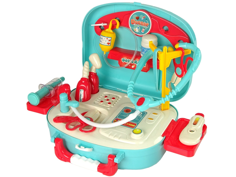 Zábavná a vzdelávacia lekárska sada pre deti v praktickom tyrkysovom kufríku podporuje fantáziu, učenie aj prekonávanie strachu z lekára. Obsahuje stetoskop, striekačku, teplomer, nožnice a ďalšie pomôcky s bezpečnými, oblými tvarmi. Ideálny darček pre malých lekárov od 3 rokov.