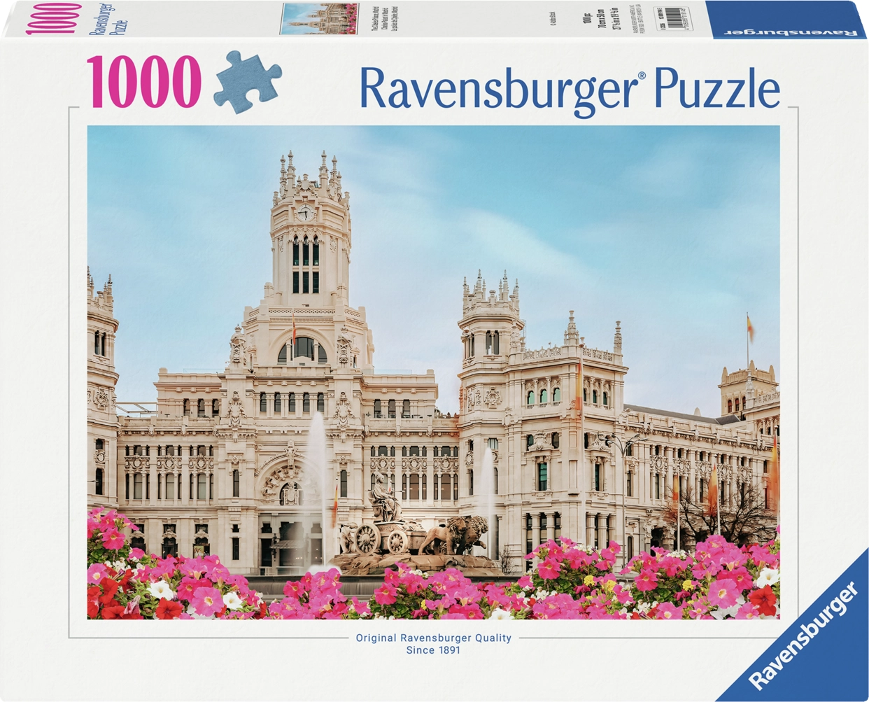 Objavte čaro Madridu s kvalitným puzzle RAVENSBURGER. Skladačka s motívom ikonického Paláca Cibeles ponúka 1000 dielikov, ktoré do seba perfektne zapadajú, a po zložení vytvoria obraz s rozmerom 70 × 50 cm. Ideálne na relax, tréning sústredenia a radosť z dokončeného diela.