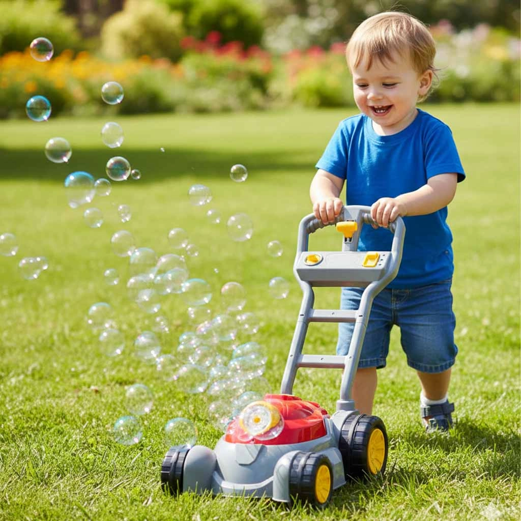 Táto realisticky spracovaná detská kosačka premení každý krok na búrku farebných mydlových bubliniek. Vďaka automatickému vypúšťaniu bubliniek, modrému podsvieteniu a príjemným zvukovým efektom si deti užijú veľa radosti pri aktívnej hre na záhrade, terase aj v interiéri.