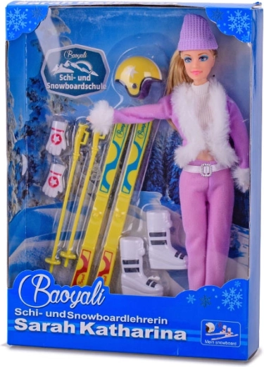 Súčasťou balenia je všetko potrebné pre lyžiarske dobrodružstvo: lyže, palice, lyžiarska prilba, čiapka, rukavice a lyžiarske topánky. Bábika je k dispozícii v dvoch módnych farbách – ružovej a fialovej. Upozornenie: konkrétny farebný variant nie je možné pri objednávke zvoliť.