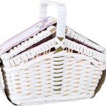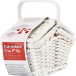 Biely prútený kôš ponúka úložný priestor pre celý set, pričom jeho pevná konštrukcia a dekoratívny prvok dodávajú autentický pocit pikniku.