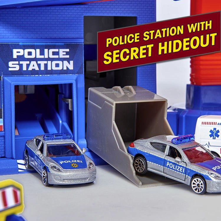 Súčasťou sú tematické zóny ako policajná stanica so skrytou skrýšou, hasičské stanovište, čerpacia stanica a umývačka. Vďaka rozsiahlemu parkovaniu pre až 35 áut a šikovnému usporiadaniu je set ideálny pre súrodencov aj kamarátov. Skvelý darček, ktorý podporuje jemnú motoriku, predstavivosť a kooperatívnu hru.