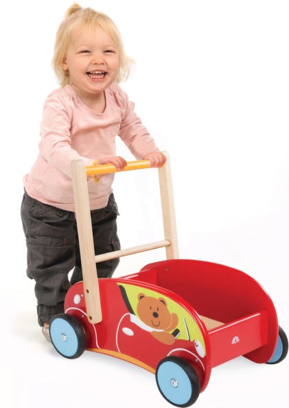 Chcete, aby vaše dieťatko posilnilo svoju mobilitu a zábavnou formou sa naučilo chodiť? Drevené chodítko v tvare auta je ideálnym pomocníkom. Je vybavené gumovými kolesami pre tichý pohyb a systémom pre reguláciu rýchlosti, ktorý chráni dieťa pred pádom. Deti tu nájdu aj úložný priestor pre svoje obľúbené hračky.
