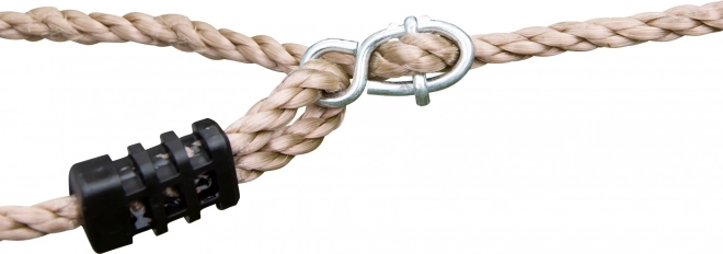 Šplhacia sieť je vybavená robustnými plastovými objímkami a kovovými prievlakmi, ktoré zabezpečujú ľahké a pevné upevnenie.