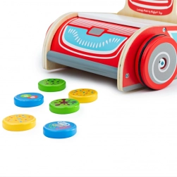 Skrytý magnet na spodnej strane vysávača zachytí farebné drevené disky, takže deti majú okamžitú spätnú väzbu a hru, ktorá skutočne funguje.