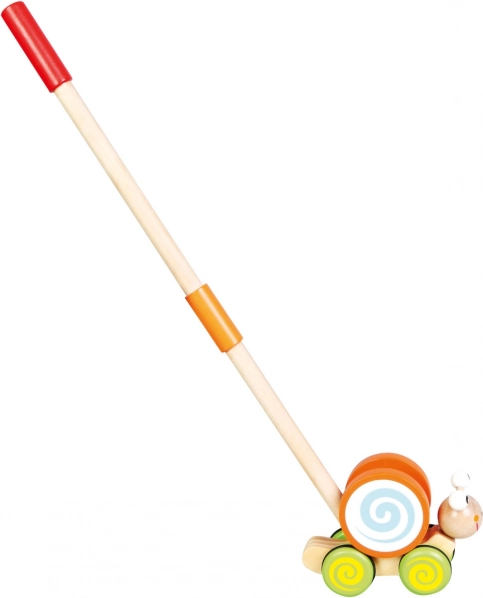 Vysokokvalitná obľúbená drevená hračka v dizajne slimáka. Hračku môže dieťa tlačiť pred sebou, pomáha rozvíjať motorické schopnosti. Deti sa taktiež týmto spôsobom učia rozlišovať farby a zvieratá. Jazdiak má pogumované kolieska pre tichý chod. Deti ho môžu tlačiť alebo ťahať doma aj vonku. Krásny darček pre vaše dieťa. Hlavné vlastnosti: podporuje dieťa v prvých krôčikoch, zábavný a rozkošný, rozvíja motorické schopnosti Rozmery: 51×11×11 cm Rukoväť: 48 cm Materiál: drevo Vek: 3+