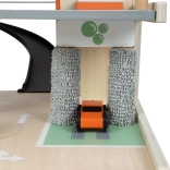 Deti vyvezú autíčka výťahom a spustia ich po plynulých rampách. Realistické prvky a mechanické závory zvyšujú napätie aj hrateľnosť.