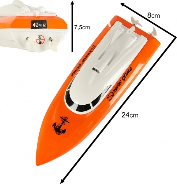 - Kompaktné rozmery – čln 24 × 8 × 7,5 cm, ideálny do bazéna či na jazierko.