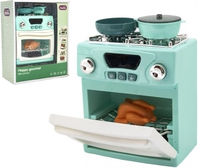 Súčasťou sady je sporák, rúra, dva hrnce a pečené kuriatko pre kompletný herný zážitok.