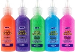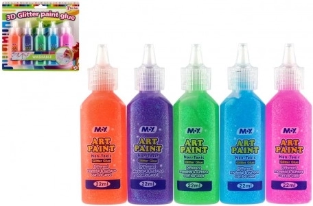 Sada 5 tubičiek špeciálnych trblietavých farieb je ideálna pre deti od 3 rokov. Chlapci aj dievčatá môžu farby nanášať nielen na sklo, ale aj na iné hladké povrchy, ako sú papier, plast, sadra, drevo či kamene. Táto kreatívna činnosť podporuje rozvoj jemnej motoriky a fantázie.