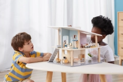 Tento moderný drevený domček poskytne deťom priestor na voľnú hru a rozvoj fantázie. Otvorená konštrukcia umožňuje jednoduchý prístup do všetkých miestností, dve podlažia a terasa pozývajú k tvorbe vlastných príbehov. Vďaka prenosnému prevedeniu ho ľahko presuniete aj upracete.