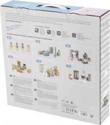 Interiér možno doplniť tematickými setmi nábytku (kuchyňa, obývacia izba, spálňa, detská izba a kúpeľňa), ktoré rozšíria možnosti hry a podporia učenie o chode domácnosti.