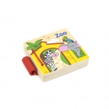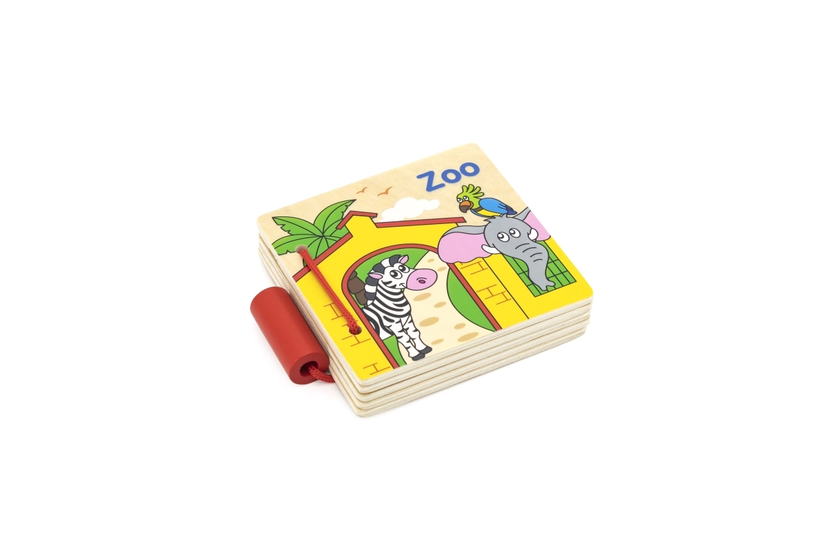 Táto roztomilá drevená knižka s motívom Zoo prináša deťom prvé zoznámenie so zvieratkami formou hry. Hrubé drevené strany s jasnými ilustráciami podporujú vizuálne vnímanie, jemnú motoriku a sústredenie. Vďaka kompaktnému formátu je ideálna na cesty aj do detskej izbičky.