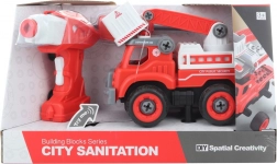 Zábavná a poučná hračka pre malých technikov: skrutkovacie hasičské auto, ktoré si deti zostavia pomocou priloženého skrutkovača alebo vŕtačky. Po vložení motorčeka z vŕtačky do auta je možné vozidlo ovládať na diaľku a jazdiť vpred aj vzad. Auto vydáva zvukové efekty, je vhodné od 3 rokov a napája sa 4× AA (nie sú súčasťou) a 3× AG13 (sú súčasťou).