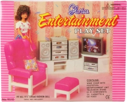 Vytvorte útulnú obývaciu izbu pre bábiky so sadou Glorie, ktorá ponúka bohatú výbavu a premyslené detaily. Deti si užijú hodiny fantazijnej hry vďaka realistickým miniatúram nábytku a elektroniky, ktoré perfektne doplnia ich domček.