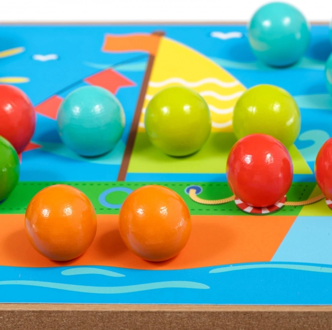 Set ponúka bohaté herné možnosti: skladanie mozaiky podľa predlôh aj vlastnej fantázie, triedenie podľa farieb, počítanie kolíkov alebo precvičovanie úchopu. Po hraní sa kolíky jednoducho uložia do ľanového vrecúška – všetko je tak prehľadné a pripravené na ďalšie tvorenie.