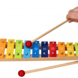 Odolný drevený rám a 12 kovových klávesov poskytujú príjemný zvuk a dlhú životnosť hračky.