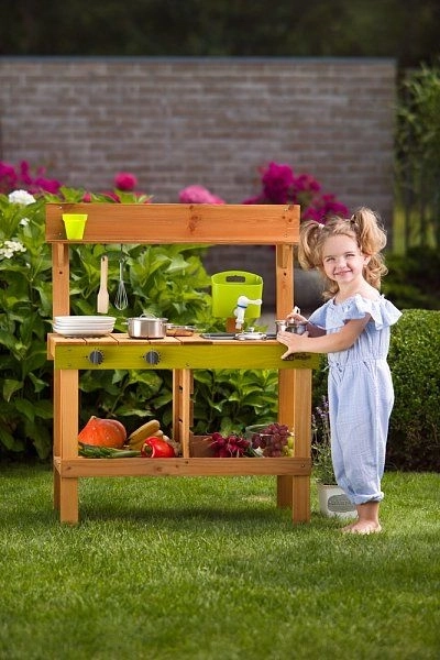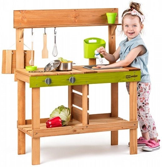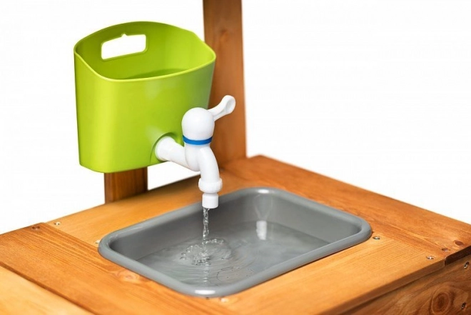 Vďaka výrazným zeleným prvkom kuchynka krásne zapadne do záhrady a podporí zmyslovú hru s vodou, hlinou aj lístím. Je ideálna pre deti od 3 rokov a pomáha rozvíjať fantáziu, role-play a sociálne zručnosti.