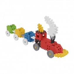 Vďaka ozubeným kolesám a otočným spojkám vzniknú funkčné modely – vrtuľníky, lietadlá či vozidlá. Deti sa prirodzene učia princípy pohybu a prevodov.