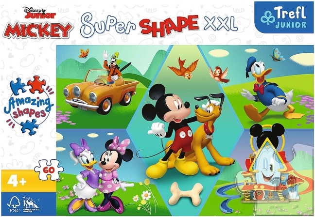 Veľkoformátové puzzle Super Shape s motívom MICKEY MOUSE ponúka 60 XXL dielikov, medzi ktorými nájdete aj kúsky netradičných tvarov. Vďaka väčším dielikom sa výborne skladajú, rozvíjajú jemnú motoriku a prinášajú množstvo zábavy pre deti.