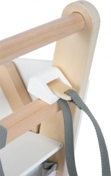 Tento detský nákupný vozík je vyrobený z pevného dreva a je vybavený pogumovanými kolieskami pre tichý a hladký pohyb. Rovnako ako v skutočnom supermarkete, tu je možnosť využitia magnetického čipu v držiaku. Vozík ponúka priestranný košík pre rôzne predmety a ďalší úložný priestor na spodnej časti.