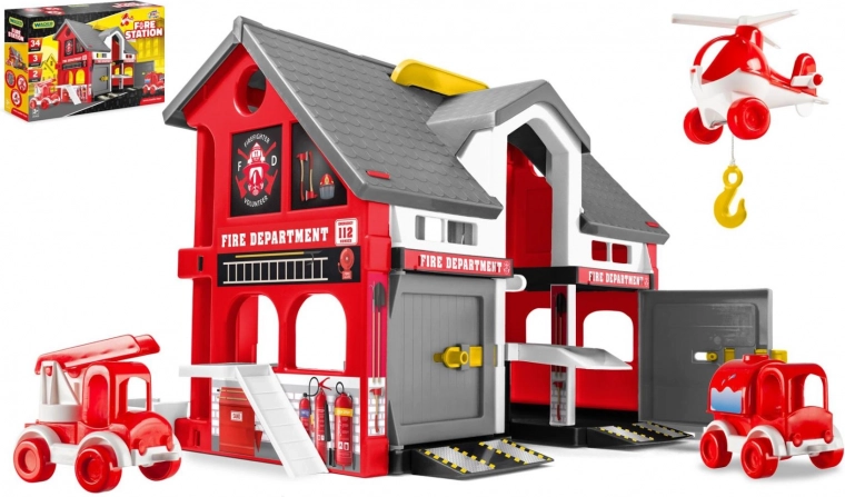 Dvojposchodový domček – hasičská stanica zo série Play House verne napodobňuje skutočnú záchranársku základňu s nájazdmi pre vozidlá, priestranným hangárom, transportným výťahom a poschodím pre službukonajúcich hasičov. Súčasťou je aj hasiaca helikoptéra. Vďaka odolnej konštrukcii a bezpečným materiálom je ideálna na každodenné hranie detí od 3 rokov.