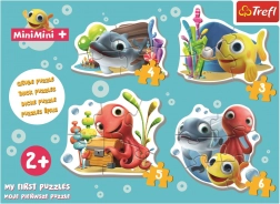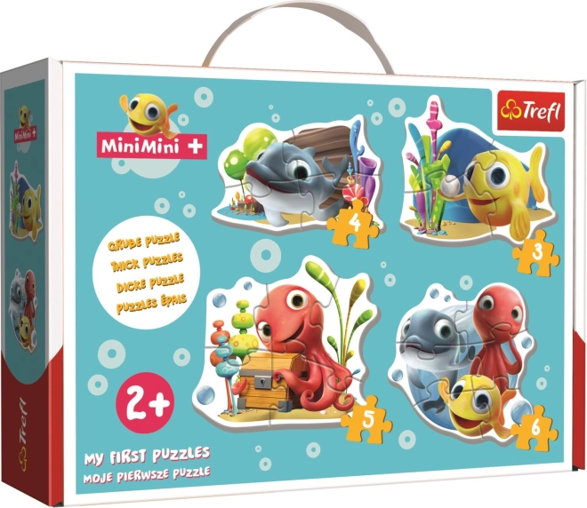 Odkrijte zabavne otroške puzzle Rybka MiniMini s priljubljenimi junaki z kanala MiniMini. Set vsebuje 4 samostojne sestavljanke z različno težavnostjo (3, 4, 5 in 6 koščkov), izdelane iz čvrstega, debelega kartona. Vesele barve in prijazne oblike spodbujajo razvoj fine motorike in logičnega razmišljanja otrok že od 2 let.