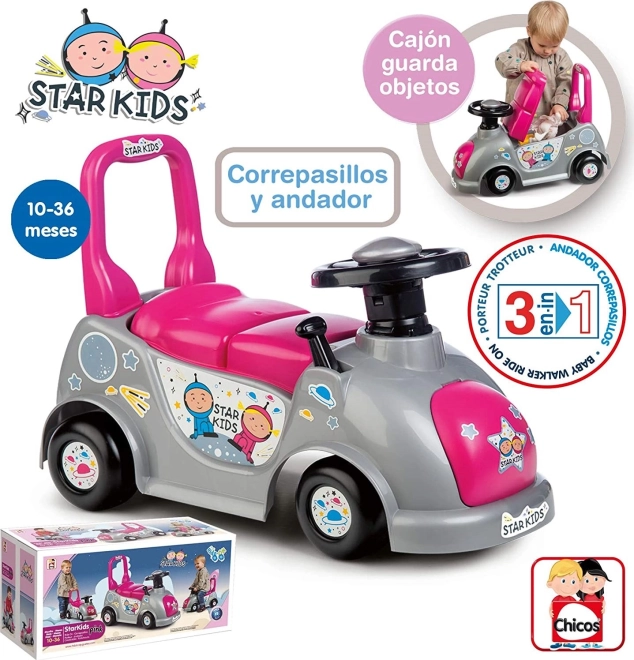 Iščete prvi voziček za svojega malčka? Poganjalec 3v1 Star Kids v rožnati barvi raste z otrokom – najprej pomaga kot hodulja pri prvih korakih, nato pa kot stabilen poganjalec za razvoj ravnotežja in samozavesti pri gibanju. Zaradi kompaktnih mer je odlična izbira za stanovanje in sprehode.