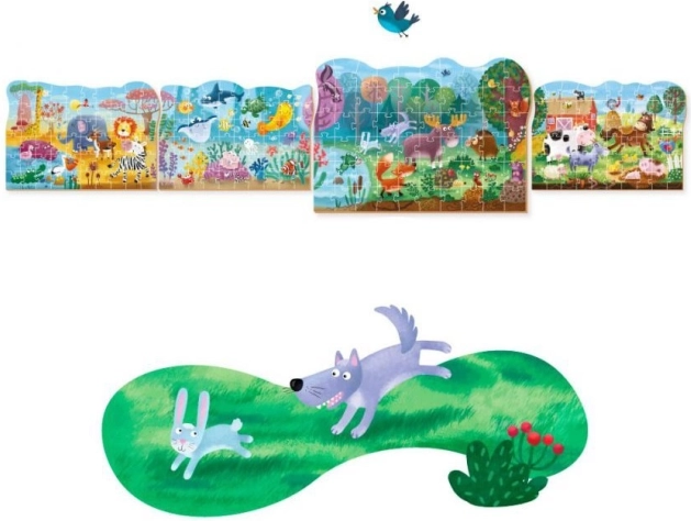 Otroški puzzle DODO iz serije Svet živali prinaša sliko afriške savane s 60 kosi. Ponuja lepe ilustracije, kakovostno izdelavo in možnost povezovanja z drugimi prizori iz iste serije. Idealno za otroke od 4. leta naprej.