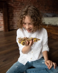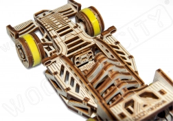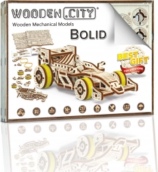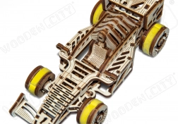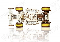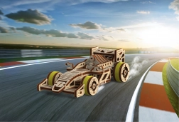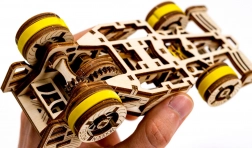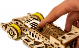 Lesen 3D puzzle Dirkaški Avto od WOODEN CITY je fascinantna dodatek za vse ljubitelje mehanike in dirkalnikov. Izstopa s prednjimi vrtljivimi kolesi, vztrajnostnim mehanizmom in povratnim kolesom. Model je opremljen z gumijastim motorjem, ki omogoča pogon avta do 45 cm na eno navijanje.