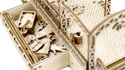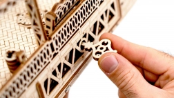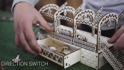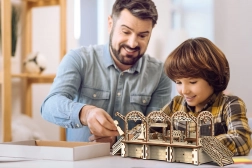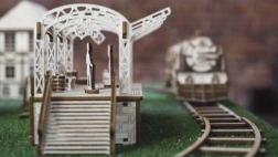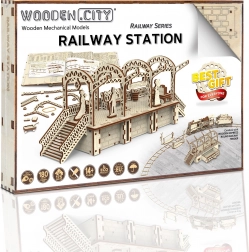 Lesene 3D sestavljanke WOODEN CITY železniška postaja prinašajo avtentično atmosfero postaje z dekorativnimi loki, klopmi in figuricami potnikov. Sestavljanje poteka brez lepila ali orodja, posamezni deli se natančno prilegajo, končni model pa je ne le dekorativen, temveč tudi funkcionalen – drobnarije preprosto skrijete v skriti predalček.