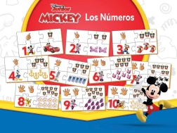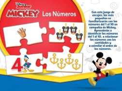 Zabavna in izobraževalna sestavljanka za najmlajše z motivi iz priljubljene serije MICKEY IN PRIJATELJI. Komplet vsebuje deset samostojnih slik po štiri koščke, ki otrokom pomagajo učiti se števil od 1 do 10. Spodbuja koordinacijo oko–roka, logično razmišljanje in prepoznavanje barv in predmetov.