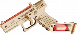 Komplet je izdelan iz okolju prijazne brezove vezane plošče in navdušuje z realističnimi elementi, kot so varovalo, nabojnik in možnost izstreliti do pet gumic zapored. Idealno za navdušence nad 3D sestavljankami, tehniko in kot izvirno darilo.