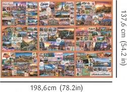 9 sestavljank (vsaka s 1500 kosi) lahko združite v velikanski sliko po plakatu ali ustvarite lastno kompozicijo. Skupna dimenzija po navodilih je 1985,6 x 1376 mm*. Zahvaljujoč tehnologiji UFT je mogoče kose povezovati na različne načine in tako spreminjati dimenzije končne slike.