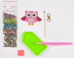 Odkrijte čar diamantnega slikanja s tem očarljivim obeskom v obliki sove. Ta komplet vsebuje vse potrebne pripomočke za ustvarjanje čudovitega bleščečega obeska, ki bo polepšal vsak prostor.