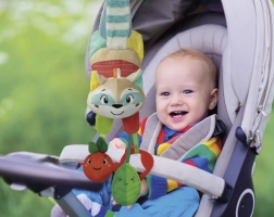 Lahek in izjemno mehak prijatelj, ki zabava dojenčka med sprehodi in počitkom. Varni materiali in privlačne barve vabijo k raziskovanju.