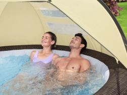 Prednosti te nadstrešnice vam omogočajo, da v celoti uživate v sproščanju v masažni kadi, z zaščito pred naravnimi vplivi.