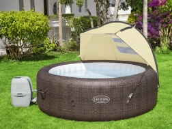 Ta nadstrešnica za masažne kadi vam zagotavlja odlično zaščito in zasebnost med vašim sproščujočim časom na vrtu. S prezračevalnimi okni, ki zagotavljajo prost pretok zraka in enostavno sestavljanje, je idealen dodatek za vse vrste masažnih kadi znamke Bestway, razen modelov St. Lucia in Vancouver.