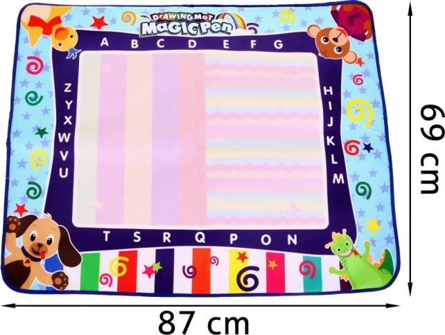 Ta vodna risalna podloga je izdelana iz prijetnega materiala, ki je enostavno zložljiv. Za razliko od papirja je večkrat uporabna. Rišite z magičnim flomastrom in po 10 minutah se znova lotite ustvarjanja. Podlogo dopolnjujejo šablone z različnimi elementi, ki jih otrok lahko obkroži in s tem spodbuja svoj razvoj.
