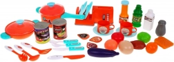 Del kuhinje je bogat komplet dodatkov, vključno z lonci, ponvami, krožniki in različnimi imitacijami živil, ki otrokom omogočajo ustvarjanje lastnih zgodb in situacij.