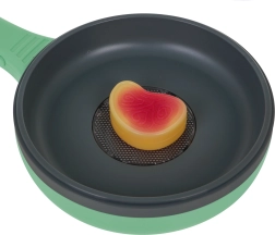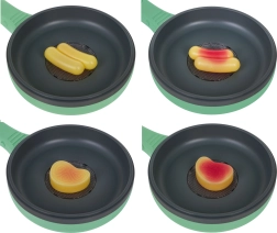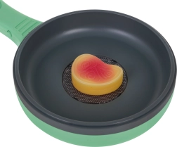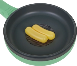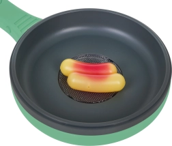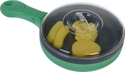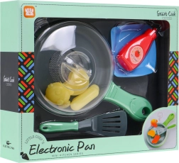Interaktivna otroška ponev s funkcijo pečenja je zasnovana za otroke od 3 let. Ta igriv kuharski set posnema pravo kuhanje z učinki pečenja in spreminjanjem barv ponaredkov hrane. Tri modre diode na sredini ponve simulirajo segrevanje, in ko je hrana 'zapečena', se diode izklopijo.