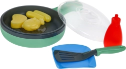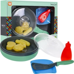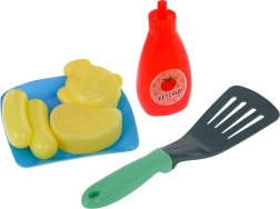 Set vsebuje ponev s pokrovom, lopatko, krožnik, kečap, ribe, zrezek in klobase za popolno igralno izkušnjo.