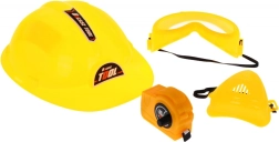 Del oblačila je tudi zaščitna čelada in dodatni varnostni elementi, ki otrokom omogočajo realistično in varno igranje vlog graditelja.