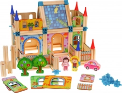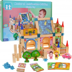Vsi elementi so iz prijetnega lesa z gladko površino, idealni za majhne otroške roke. Komplet podpira razvoj prostorske predstavljivosti, logičnega mišljenja in ustvarjalnega pripovedovanja. Kombinacija konstrukcijskih in igralnih delov spodbuja otroke k svobodni igri in skupnemu grajenju s starši.
