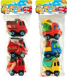 Komplet vijačnih avtomobilčkov za otroke, ki vsebuje tri različne modele dolžine 10 cm. Idealno za male graditelje in gasilce.