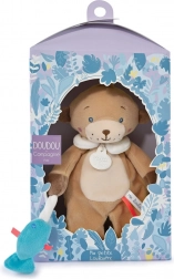 Ta ljubek medvedek je predstavljen v čudoviti dizajnerski darilni škatli, kar ga naredi za idealno darilo ob rojstvu. Zaradi edinstvene kombinacije odtenkov bež in rjave barve ter izjemno mehkih materialov bo igrača priljubljena med otroki vseh starosti. Medvedek drži majhno barvito ribico in ima številne detajle, ki spodbujajo otroško domišljijo. Ponuja občutek mehkobe, udobja in zaščitnega objema od prvih dni življenja.