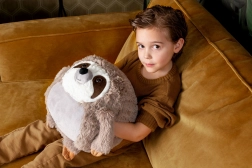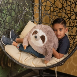 Nazadnje se okleni večfunkcijskega plišastega lenivca, ki služi kot blazina, rokavnik ali zvest plišasta igrača. Idealen za potovanja z avtom ali letalom, ta lenivec nudi udobje in toploto s pomočjo dveh stranskih odprtin za roke. Te odprtine lahko služijo tudi kot skrivališče - popoln prostor za skrivanje majhnih zakladov.