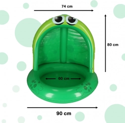 Živahen zeleni dizajn z velikimi žabjimi očmi in napihljivimi nogicami dodaja avtentičen videz. Poleg tega pametna streha ščiti otroke pred škodljivim UV sevanjem, kar zagotavlja dolge ure varne igre v vodi.